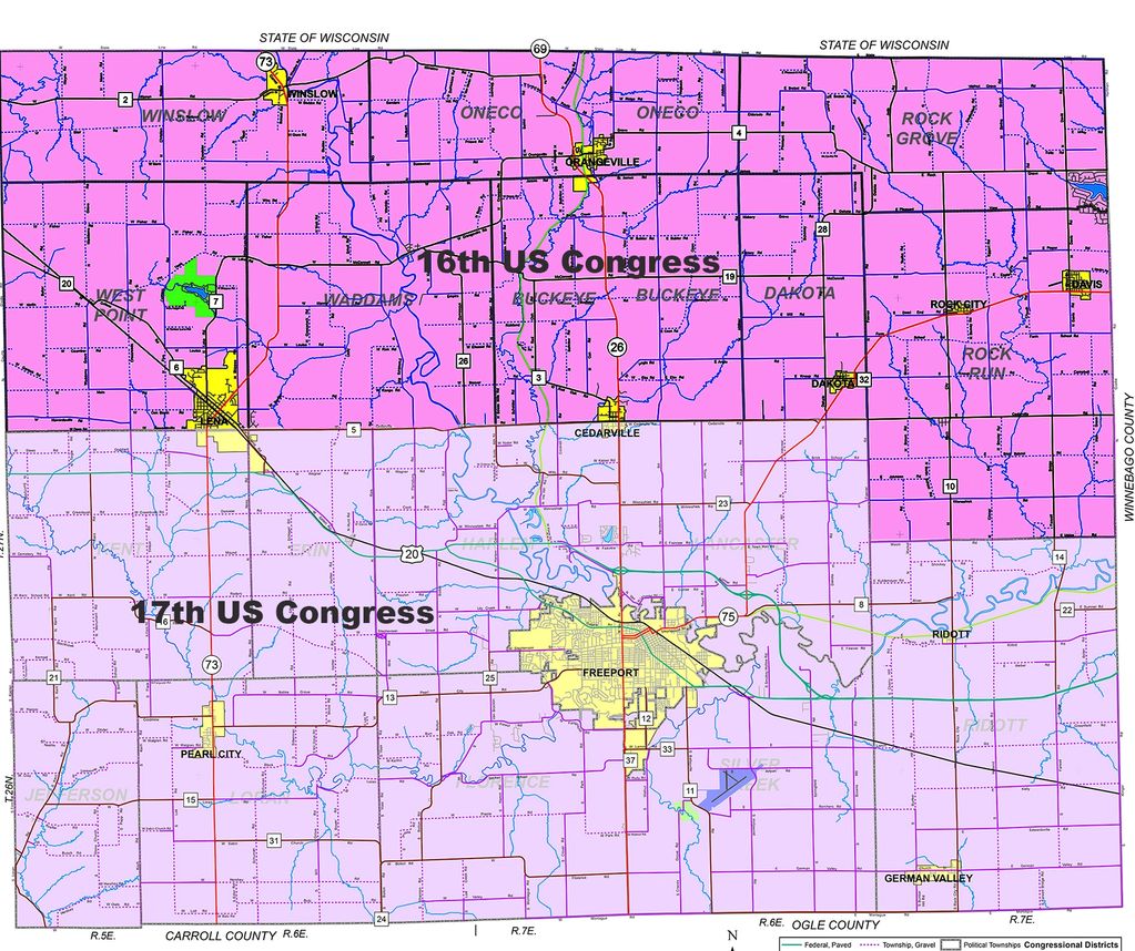 This map shows the two US Congressional Districts that are in Stephenson County.
